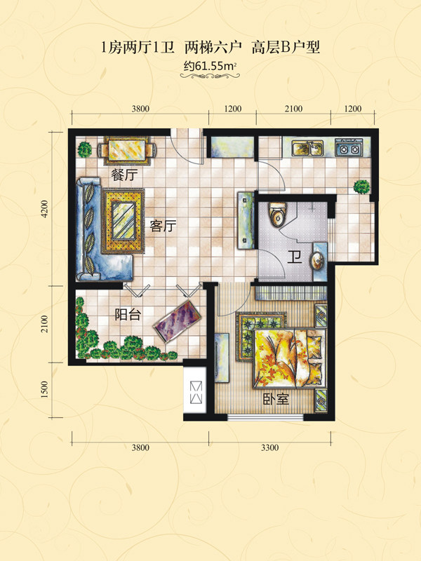 面积:61.55㎡